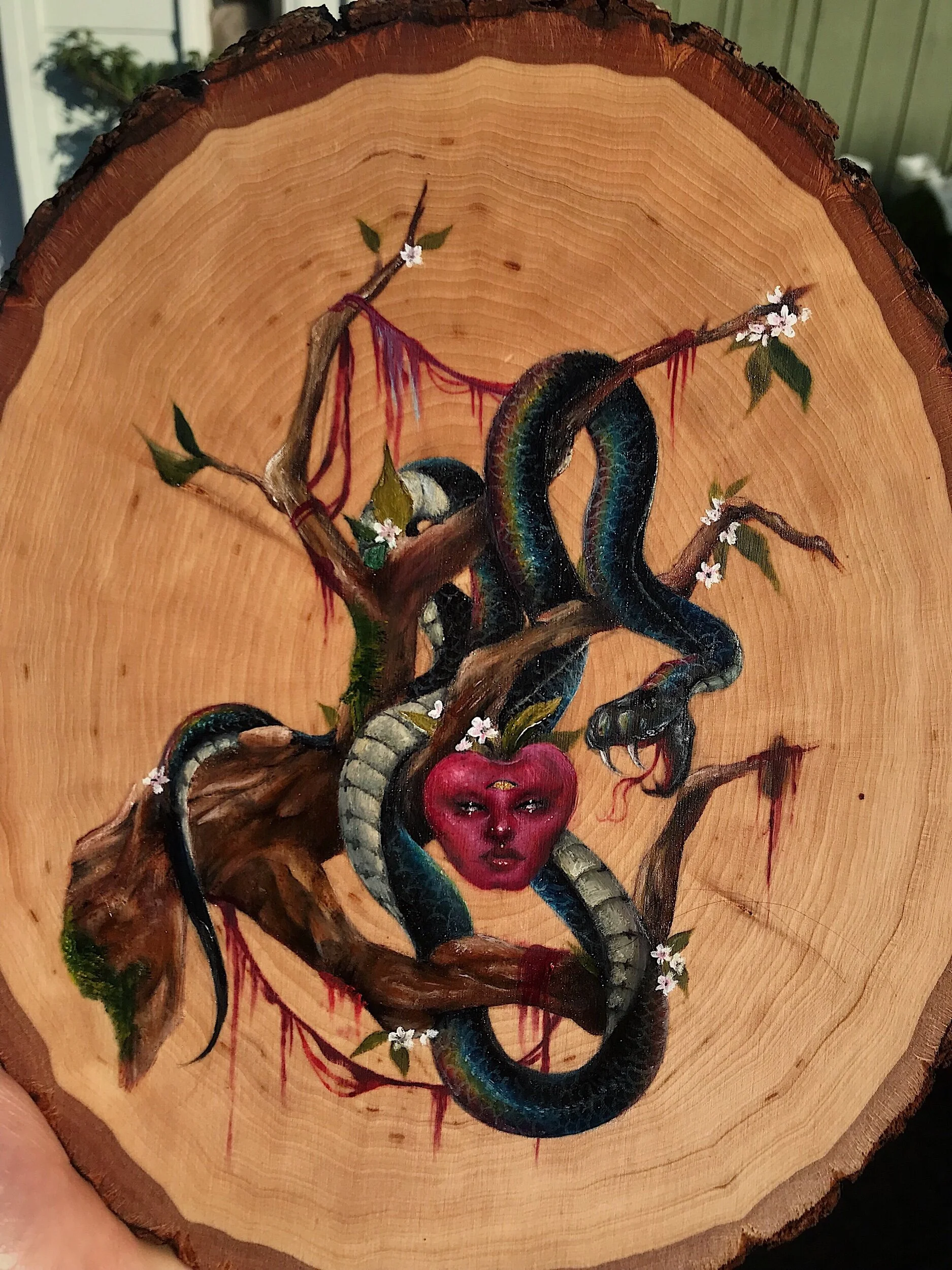 Sarita/Sarah/4bidden Fruit is a LA based artist, currently working out of Koreatown. She enjoys experimenting with all mediums but gravitates towards tattooing, oil paint, and graphite. She’s come here to create, in whatever form that may come.
